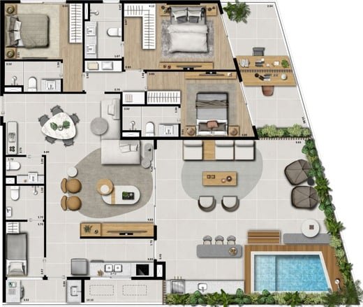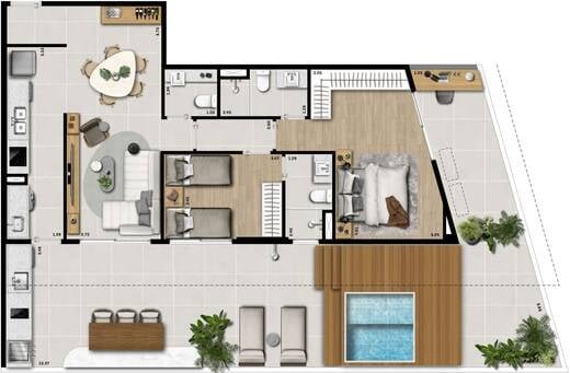 Piscina, deck, sauna, gourmet com lounge, academia e coworking.