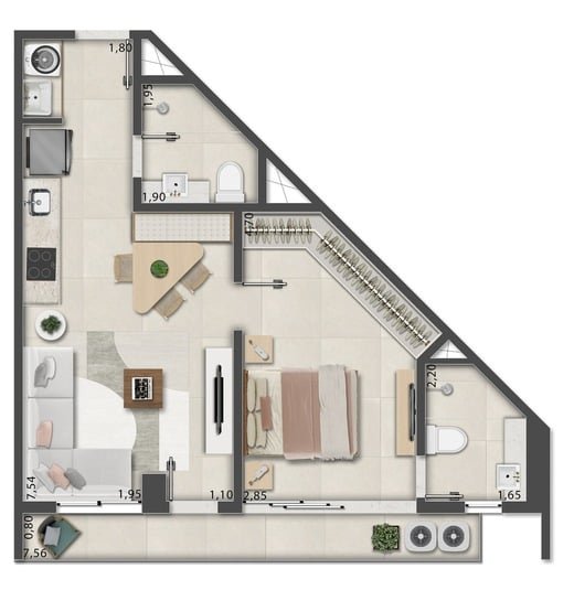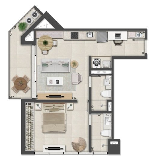 Mais Detalhes - Dormitórios1 Banheiros1