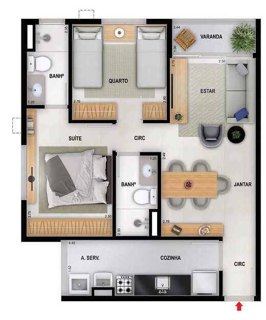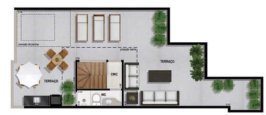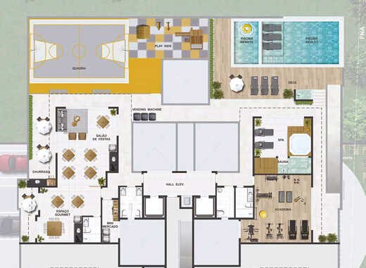 - **Deck molhado**, **horta coletiva**, **lavanderia**, **pet place** e **tomada para carro elétrico** para um cotidiano prático e sustentável.