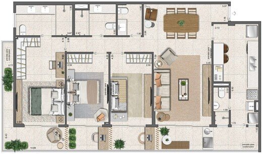 Este apartamento é mais do que um lar, é um estilo de vida. Com uma variedade de comodidades como academia, bicicletário, churrasqueira, elevador, espaço gourmet, jardim, lounge, piscina, playground, portaria 24 horas, SPA e varanda, este imóvel oferece conforto, lazer e segurança em um só lugar.