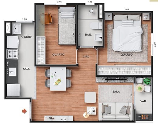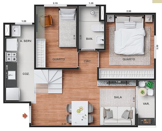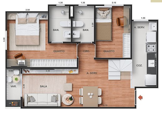 Mais DetalhesDormitórios2 Suítes1 Banheiros1 Garagens1