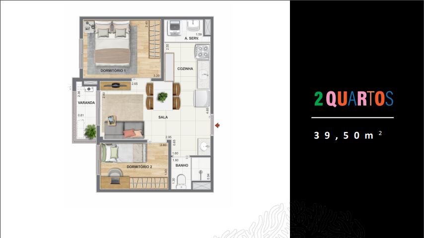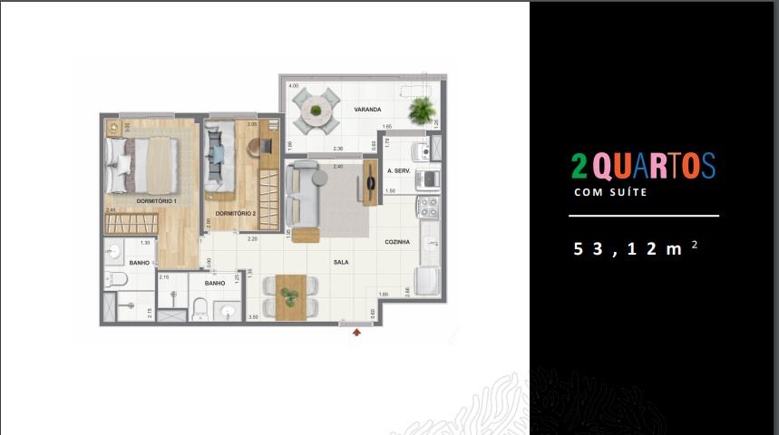 2 Quartos c/ Suíte: