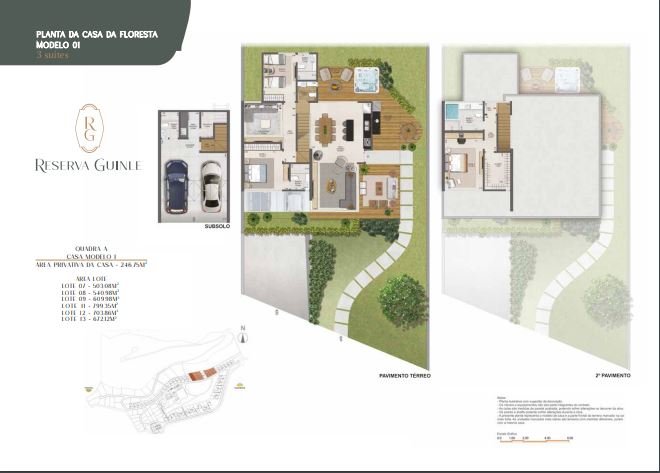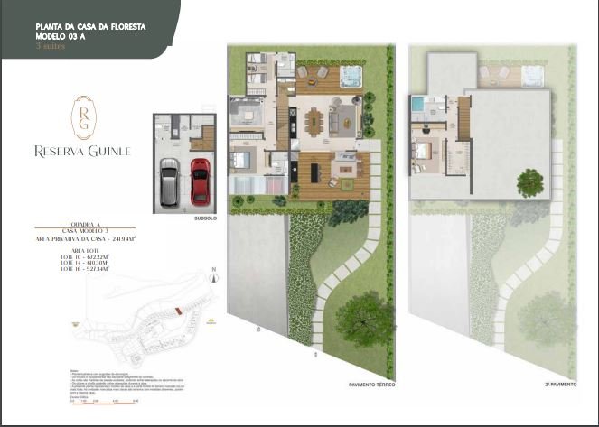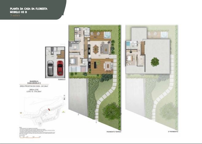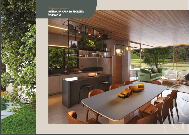 Casas da Floresta A elegância de morar em espaçosos 2 a 4 quartos, que variam de 144,07m2 a 246,75m2 de área privativa. Localizadas em terrenos adjacentes a uma floresta exuberante, estas casas oferecem vistas panorâmicas de jardins preservados, conectando você com a tranquilidade da natureza sem abrir mão do conforto.