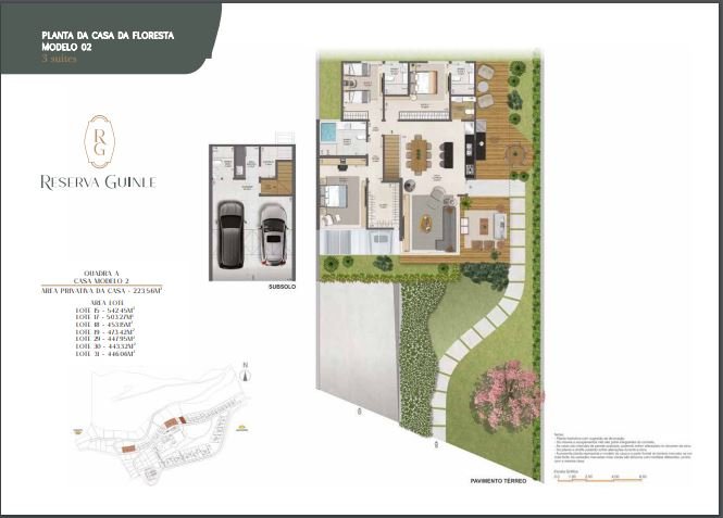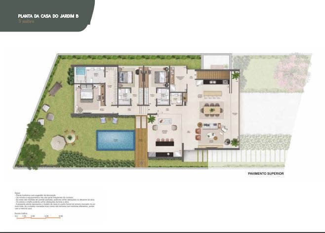Casas do Jardim Viva a sofisticação em residências amplas de 3, 4 ou 5 suítes, que variam entre 294,84m2 e 380,19m2 . Cada casa é um santuário de espaço e conforto, que ainda conta com uma área gourmet de alta classe e uma piscina convidativa. Experimente o ápice da vida moderna, dotada de todas as conveniências e luxos que você poderia desejar.