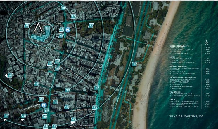 O Aqua Village está localizado em um ponto incrível na Zona Sul, cercado de comércios, escolas, bancos, restaurantes e mobilidade urbana. Além de ter tudo por perto, você ainda está ao lado do Aterro do Flamengo, com lazer pra toda a família.