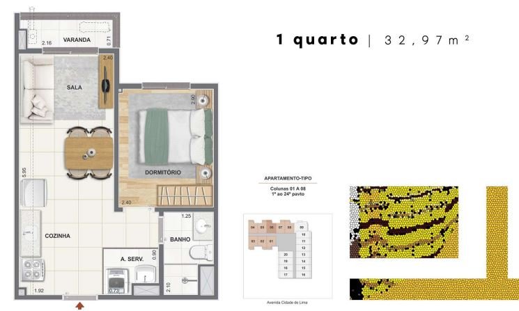 - Dormitórios1 Banheiros1