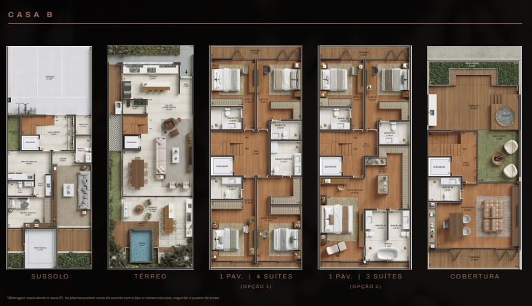 20 CASAS EXCLUSIVAS NA BARRA, DE 535M² A 615M², COM ATÉ 6 SUÍTES E 3 VAGAS NO SUBSOLO.