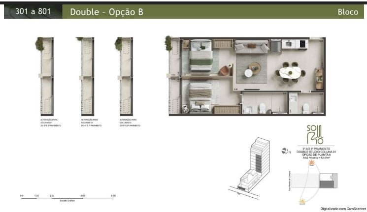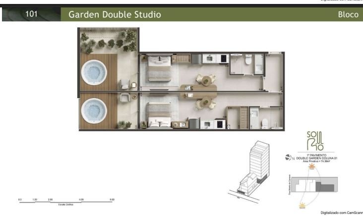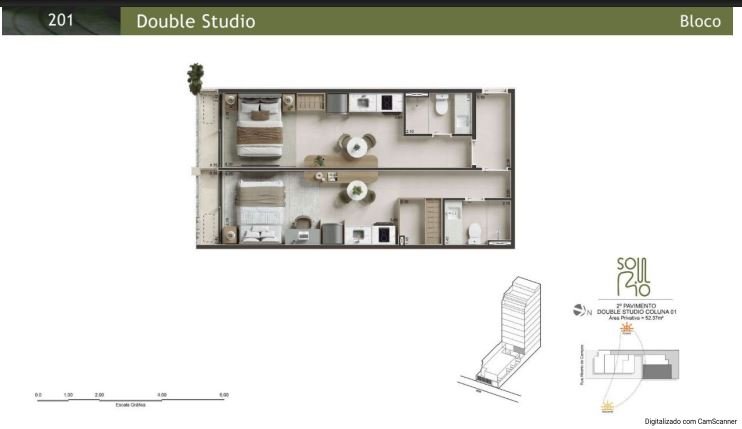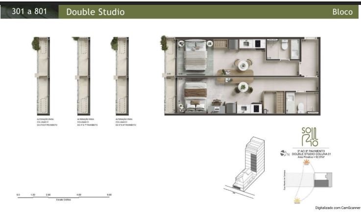 Bloco: 02 unidades Double Studio por pavto
