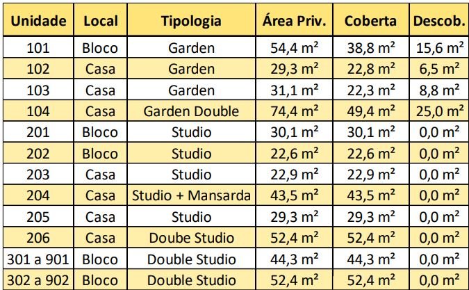 Casa: 03 Gardens + Bloco: 01 Garden Double