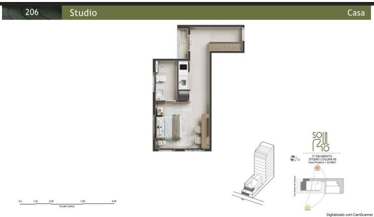 01 Studio + Mansarda de 43m²