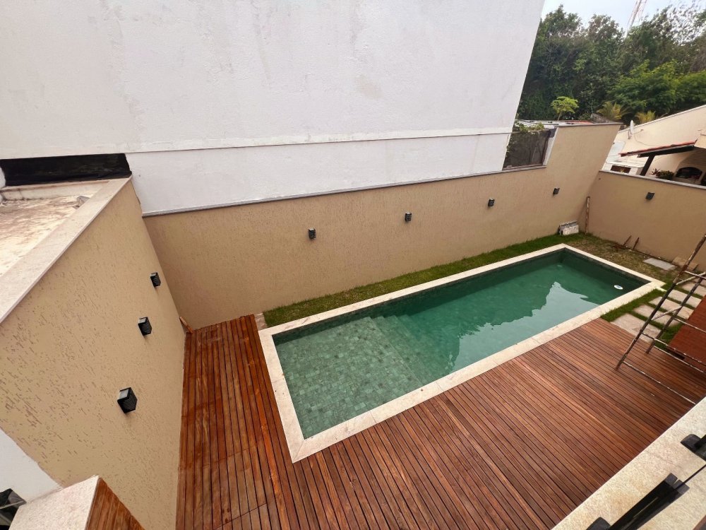 Área Gourmet com piscina com prainha e iluminação, churrasqueira com coifa, deck de madeira, teto todo de lambri, ilha enorme de granito (com armários planejados), chuveirão, gramado pronto para receber um lindo jardim, banheiro externo e acesso independente pela lateral da casa.