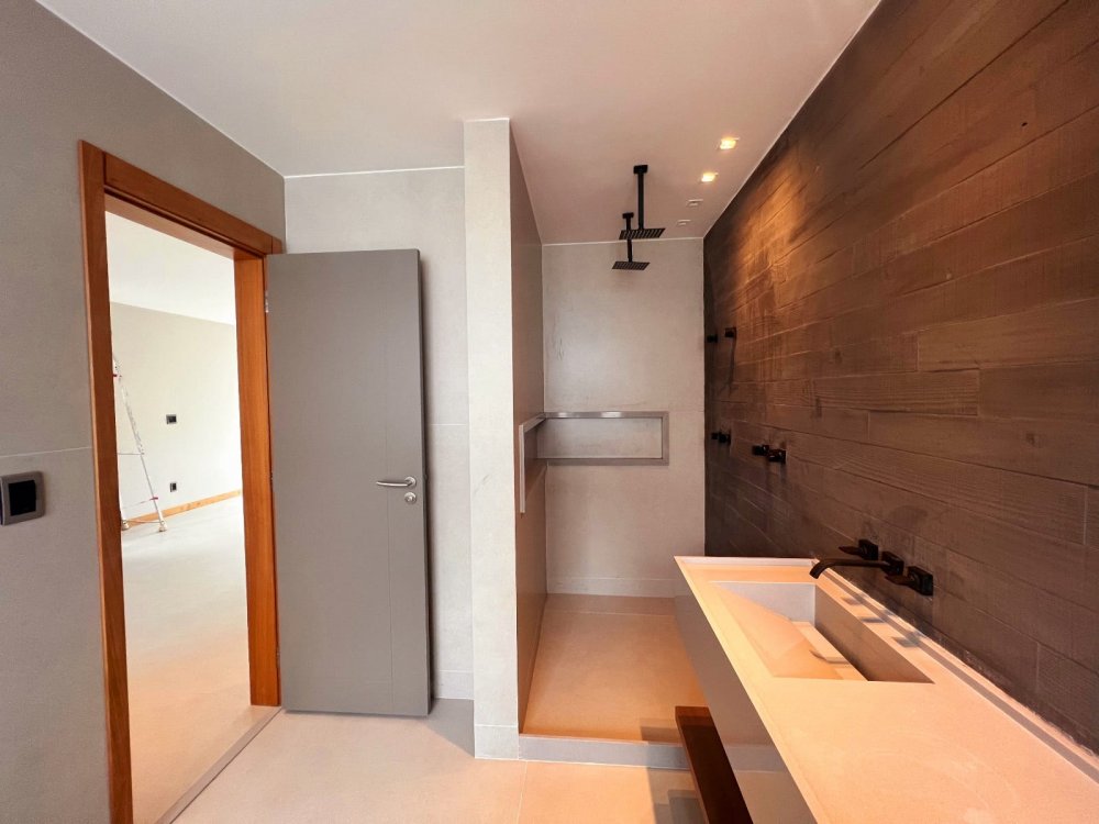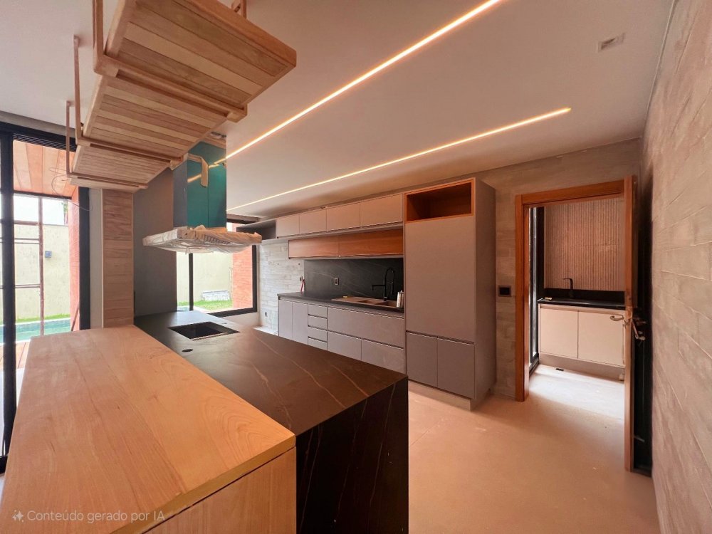 1° piso: sala ampla, cozinha americana (com armários), bancadas de lâminas ultracompactas (Dekton), lavabo, 2 suítes térreas (sendo 1 dependência), área de serviço com acesso independente pela garagem.